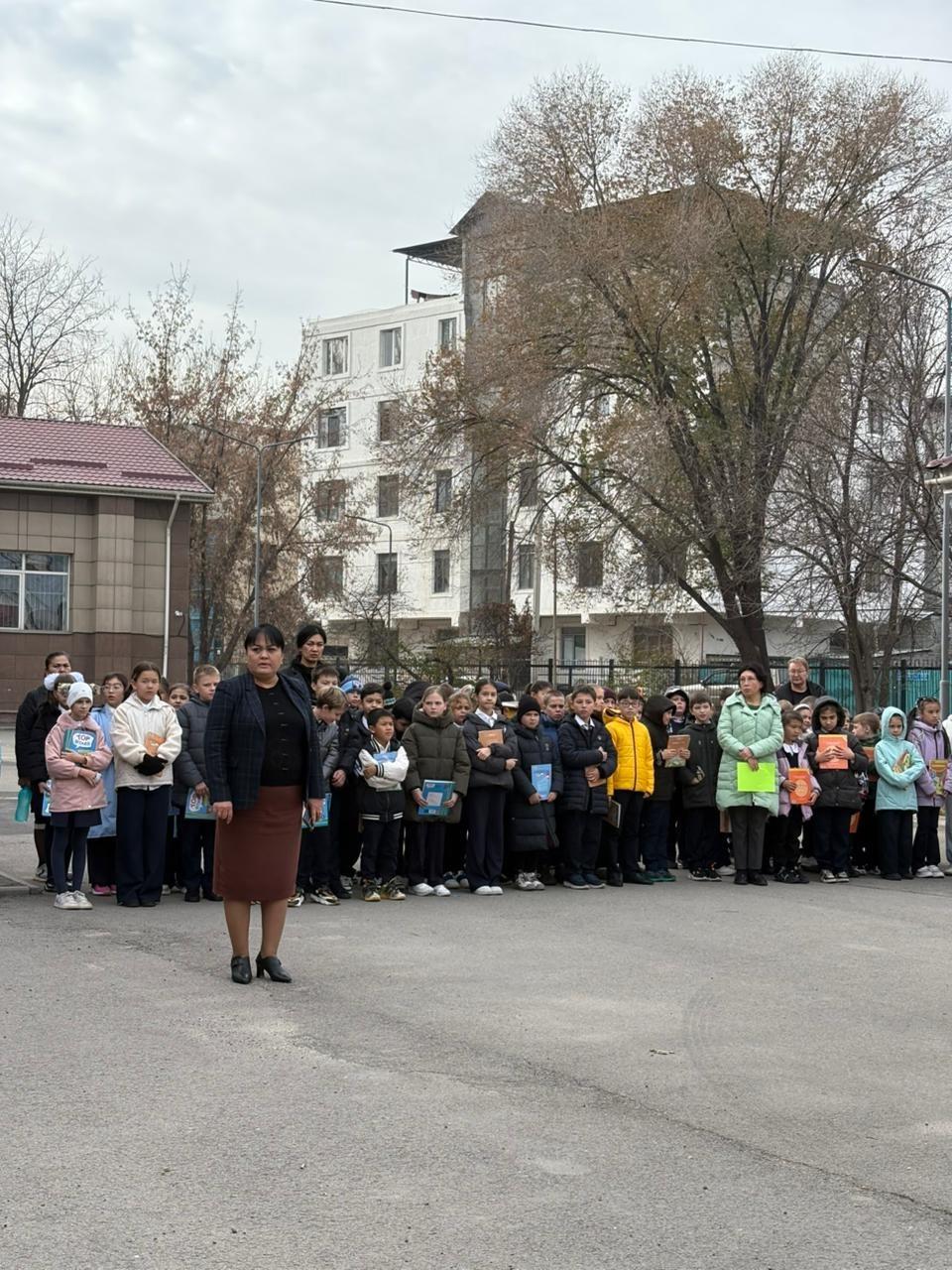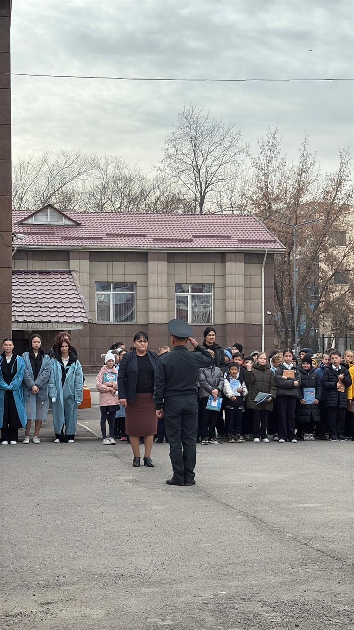 🔔 Дабыл сигналы берілгеннен кейін оқушылар мен мұғалімдер оқу кабинеттерінен тәртіппен шығып, қауіпсіз аймаққа жиналды.