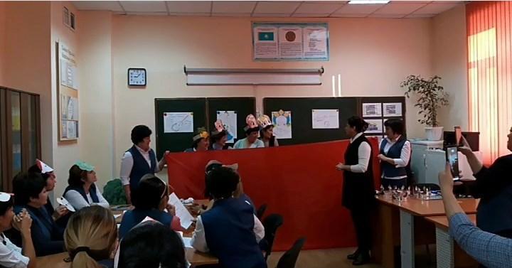 23 ноября согласно плана работы Жетысуского Р00 и учебного плана КГУ ОШ 57 состоялся методический мостик на тему:" Влияние диалогического обучения на развитие познавательной активности учащихся на уроках казахского, русского, английского языках". Организаторы мостика подошли творчески к теме занятия, предложив разделиться на театра и разыграть знакомые всем сказки на трех языках, привлекая нас в диалоговую игру. Форма диалог - это способ общения на уроках. Поэтому в этой форме мы можем выявить у каждого ученика формы человеческого общения, такие как взаимоуважение, взаимообогащение, сопереживание и сотворчество. И театральная форма максимально раскрывает творческий потенциал каждого ребенка, что и доказали учителя, вернувшись на миг в детство.