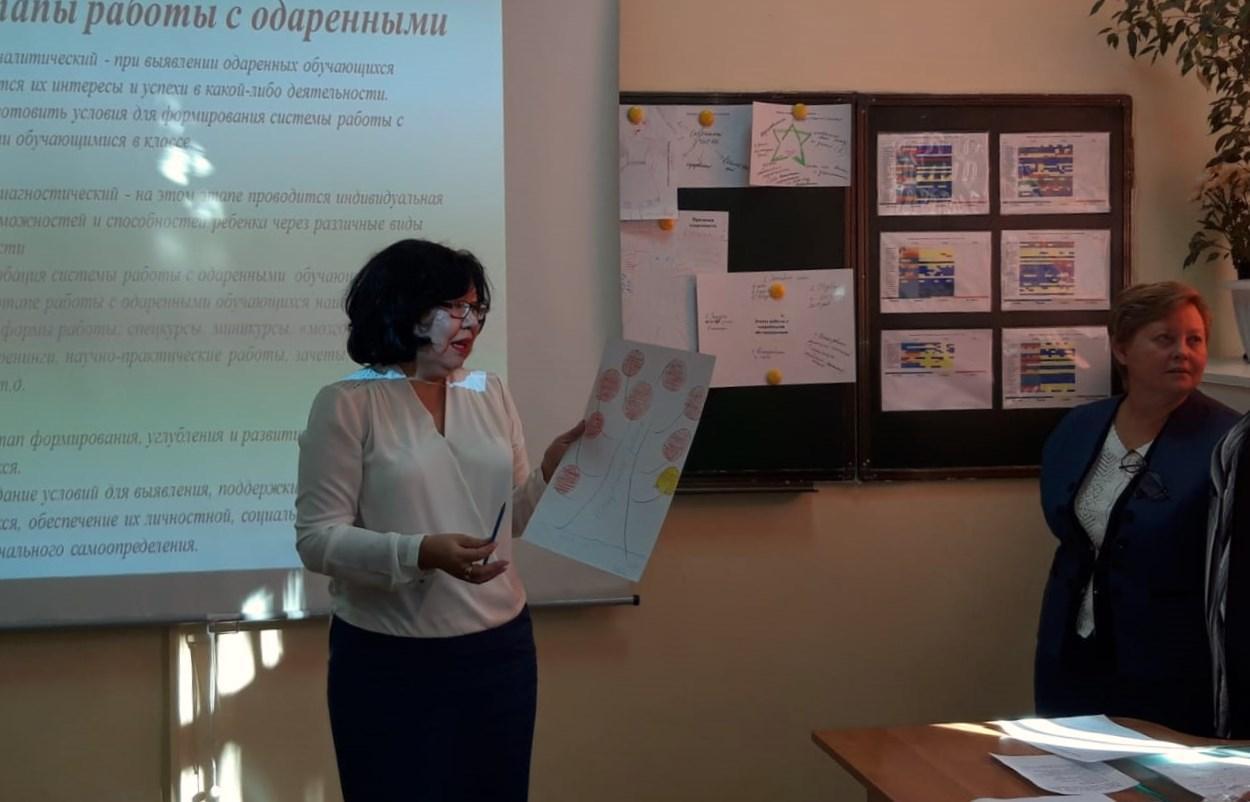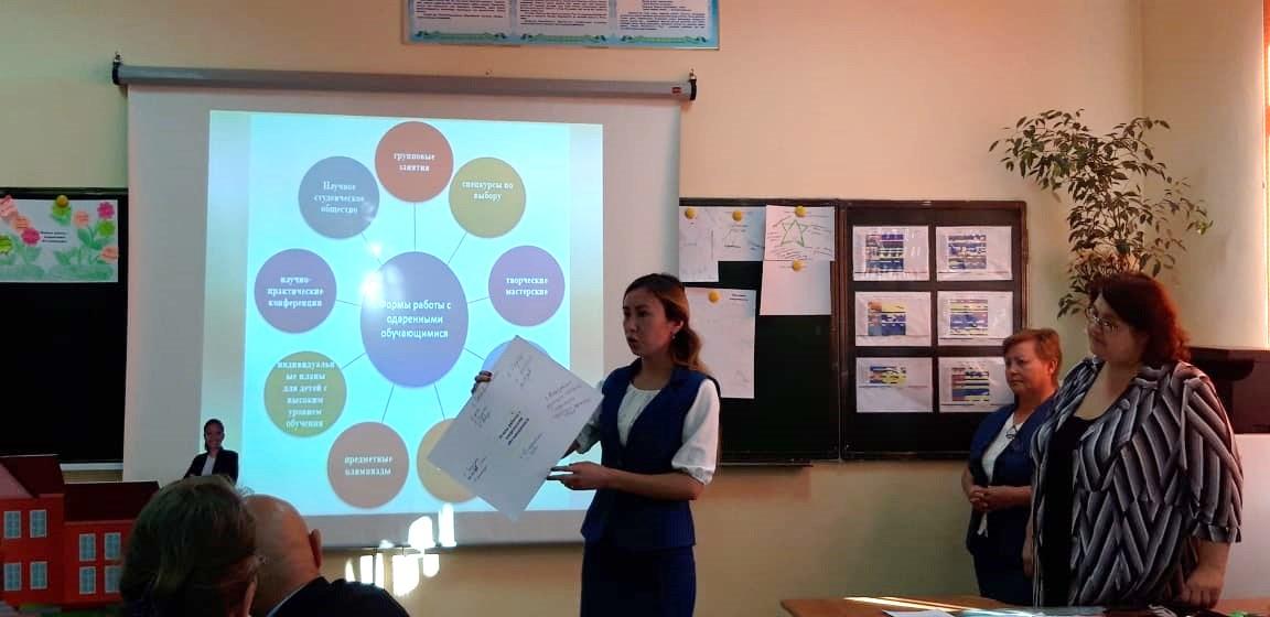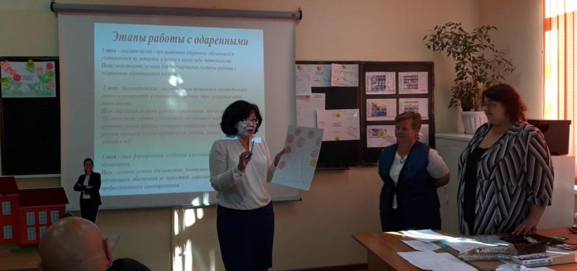 Согласно плану работы Жетысуского РОО в рамках обучающего семинара 26.10.2019г. в школе проведен МЕТОДИЧЕСКИЙ МОСТИК учителем биологии Загурской С.А и учителем художественного труда Вострых С.Г. для учителей "ЭФФЕКТИВНЫЕ ПРИЕМЫ РАБОТЫ С ОДАРЕННЫМИ ДЕТЬМИ ПО ПРЕДМЕТУ". Проблема работы с одаренными учащимися актуальна для современного общества. Поэтому на семинаре были рассмотрены и сформулированы наиболее эффективные педагогические приемы работы с одаренными детьми. А главная задача учителя -вовремя заметить одаренного ребенка. Подводя итог пришли к решению: еще раз воплотить в жизнь классические принципы педагогики: Индивидуальный подход к каждому ученику при групповом обучении;