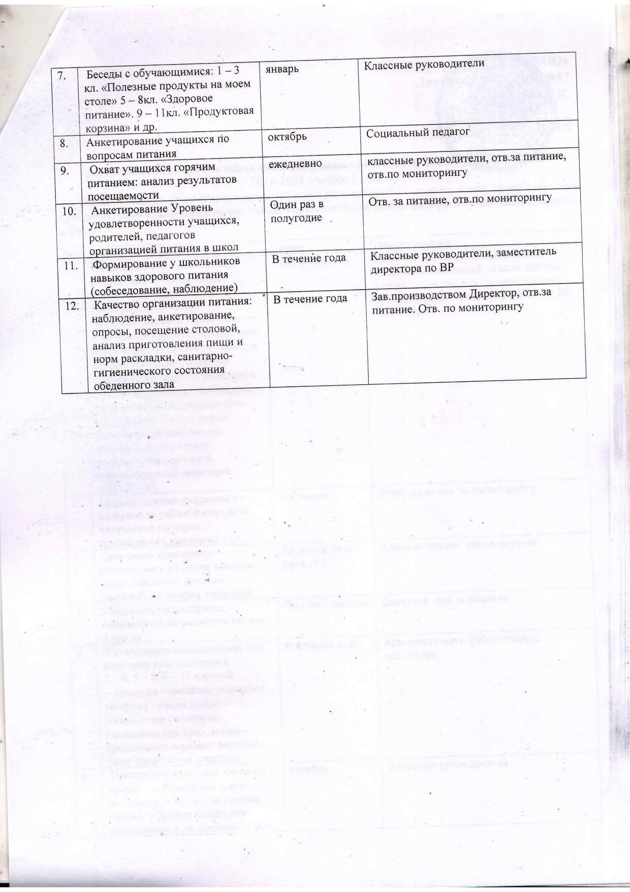 02 қыркүйек 2021 0 1 2 3 4 5 План работы по организации питания учащихся 1-11 классов КГУ ОШ №57 на 2021-2022 учебный год