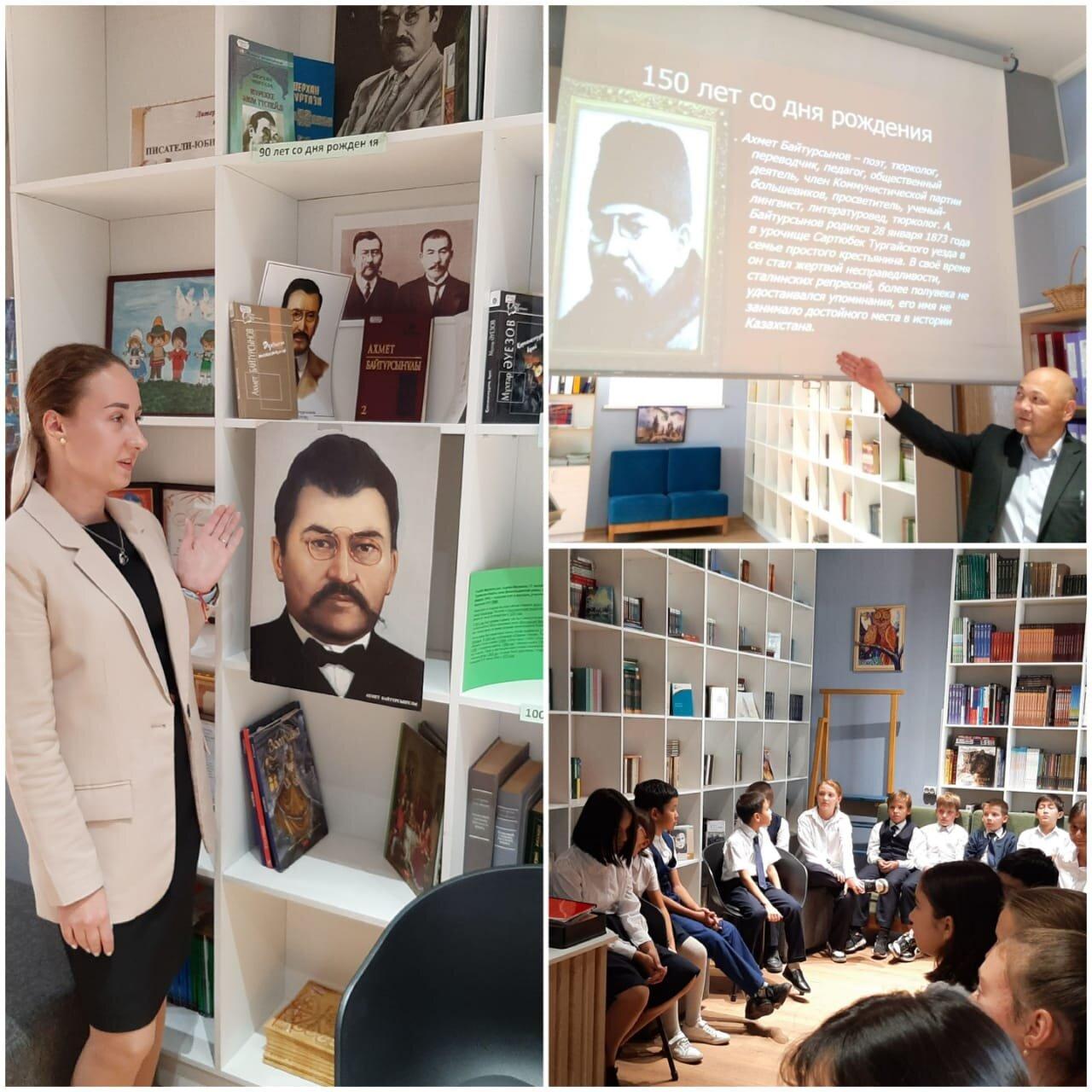 Библиотекарь Зосимова М.А. и учитель истории Кокидько Е. С. организовали литературно-просветительское мероприятие, посвященное 150- летию жизни и деятельности великого лидера Ахмета Байтурсынова. Учащиеся познакомились с новыми историческими данными и литературными сведениями о великом писателе и расширили свои знания о жизни и деятельности Ахмета Байтурсынова.