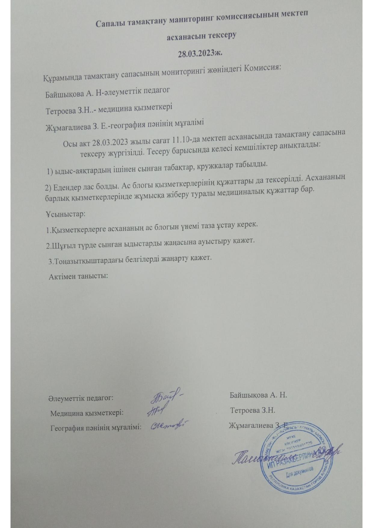 28 наурыз 2023 0 1 2 3 4 5 Тамақтану сапасын бақылау бойынша мектеп асханасын тексеру. Обследование школьной столовой комиссией по мониторингу качества питания
