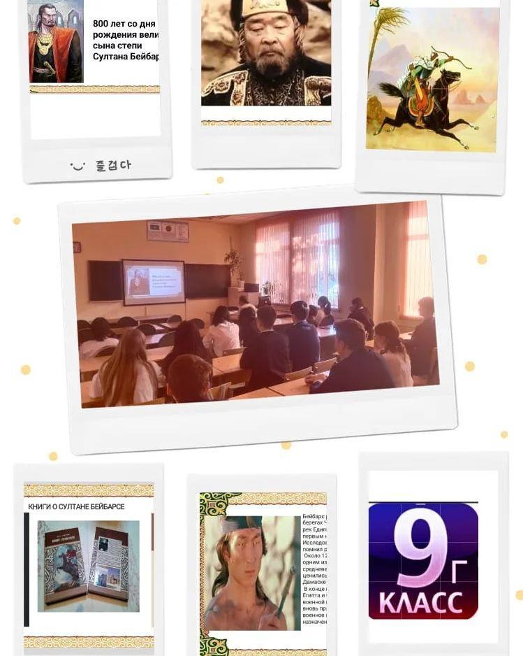 Мектепте даланың ұлы Сұлтан Бейбарыстың туғанына 800 жыл толуына орай сынып сағаттары өткізілді.В школе проведены классные часы, посвященные 800 летию со дня рождения великого сына степи Султана Бейбарса.