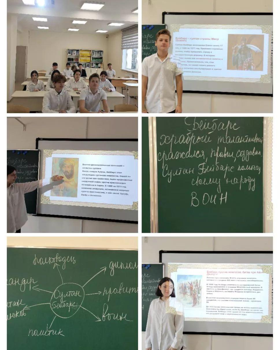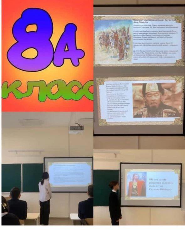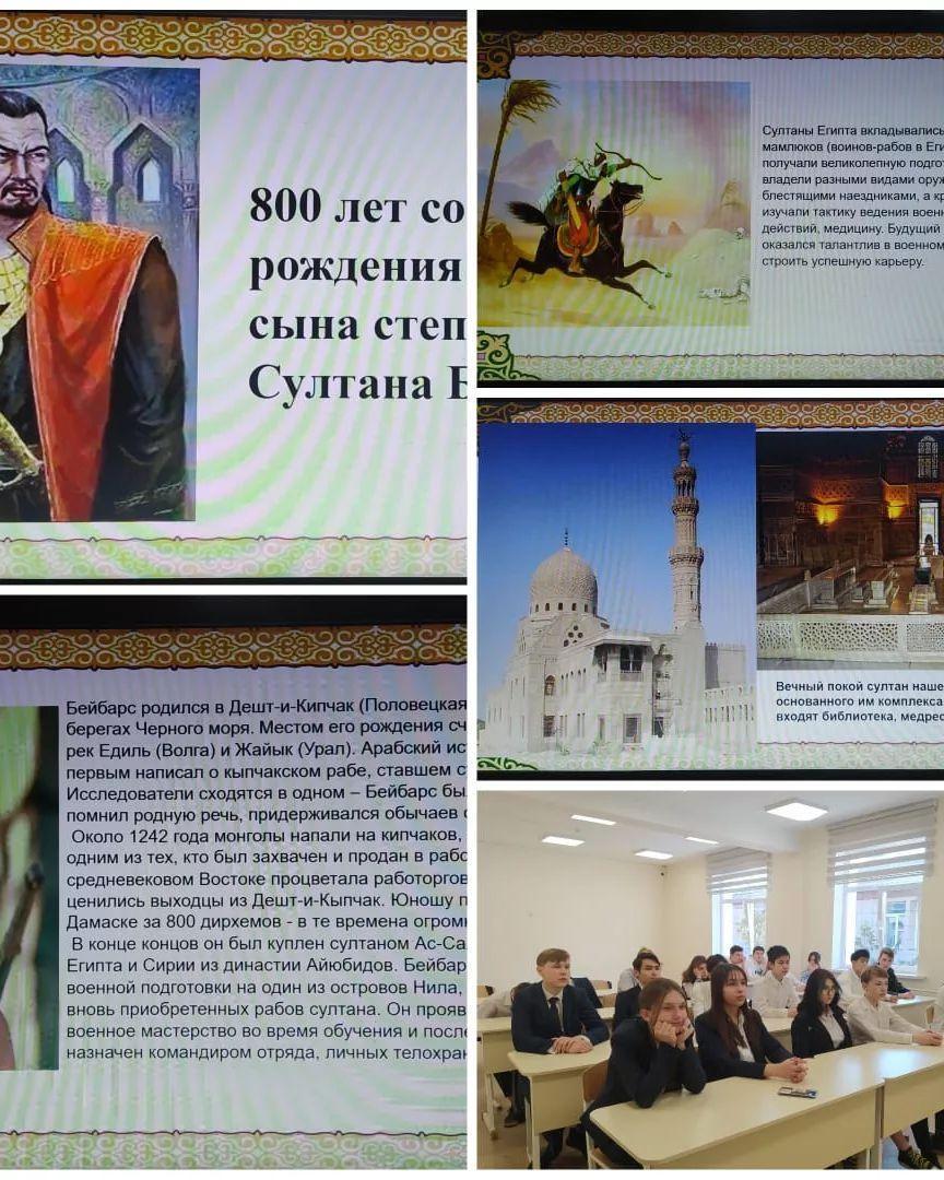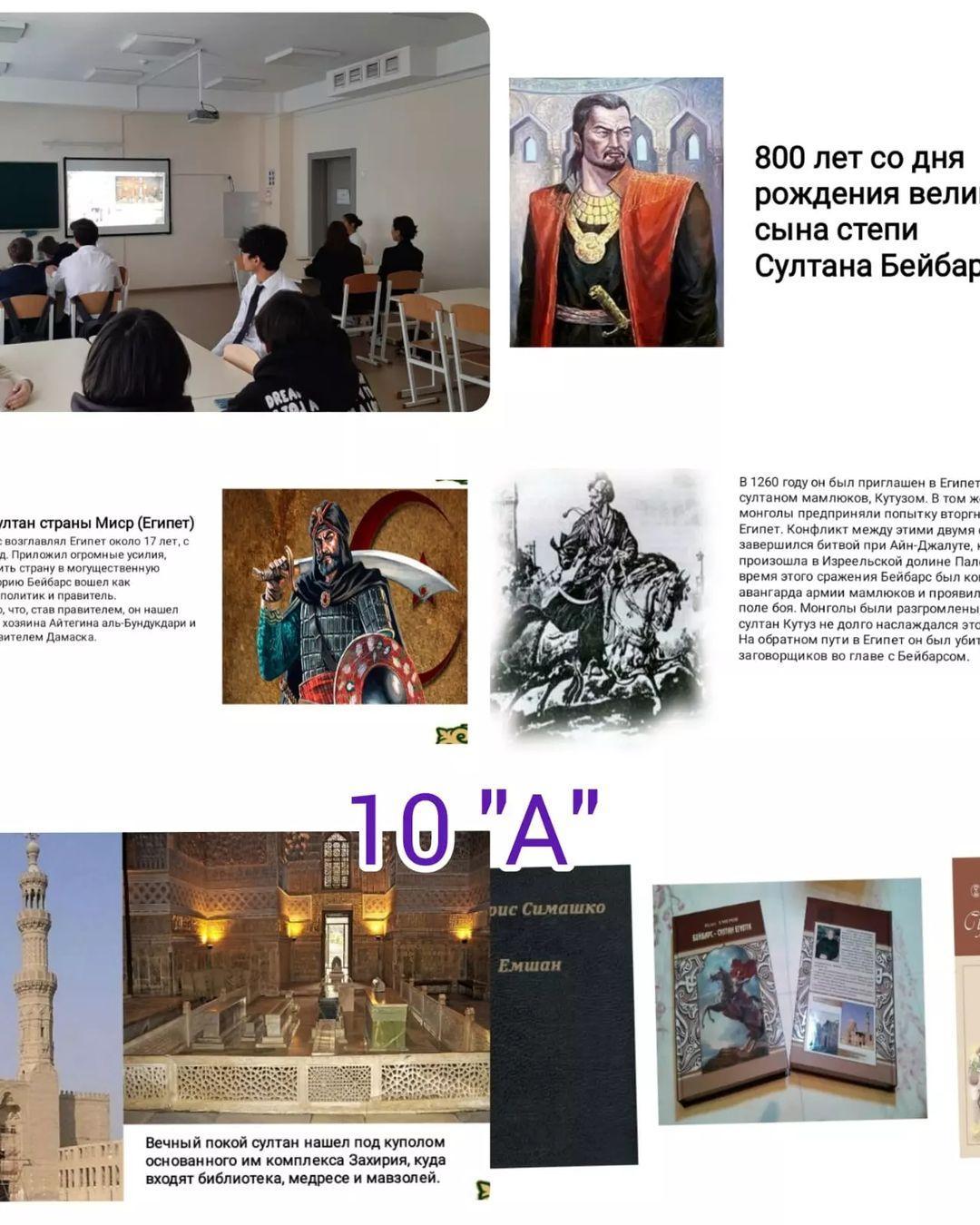 В школе проведены классные часы, посвященные 800 летию со дня рождения великого сына степи Султана Бейбарса. Учащиеся ознакомились с биографией и героическими подвигами выдающегося полководца Султана Бейбарса.