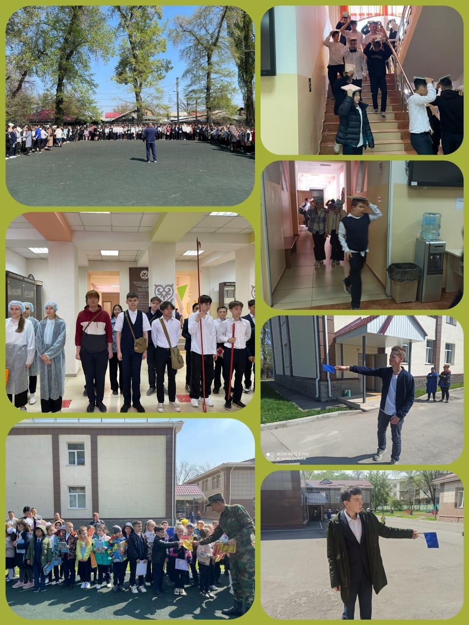Жер сілкінісінен кейін зардап шеккендерді жинап, оларға қажетті көмек көрсету мақсатында мектебімізде зардап шеккен тұрғындарды қабылдау пункті ашылды. Төтенше жағдай қаупі төнген кезде барлық пункт басшыларының іс-әрекеттері көрсетілді, халықты жинау, есепке алу және уақытша орналастыру элементтері пысықталды.