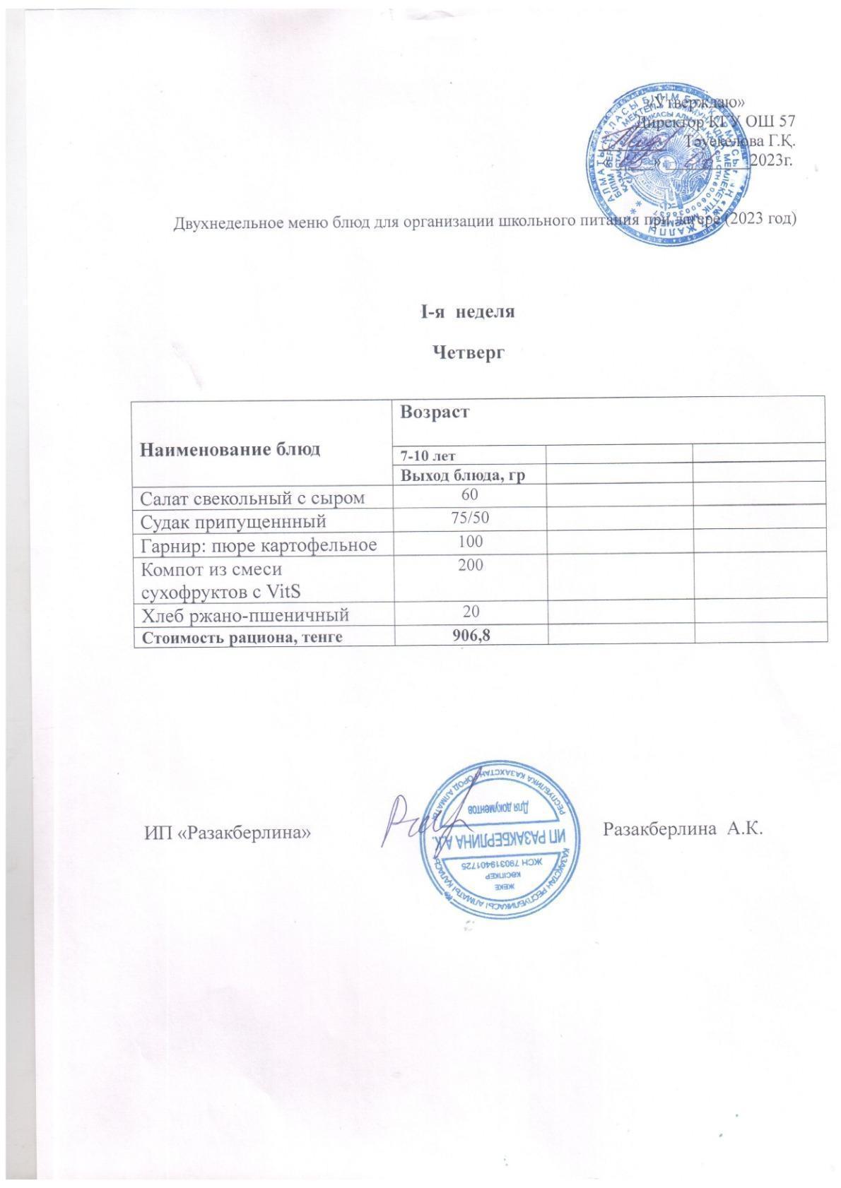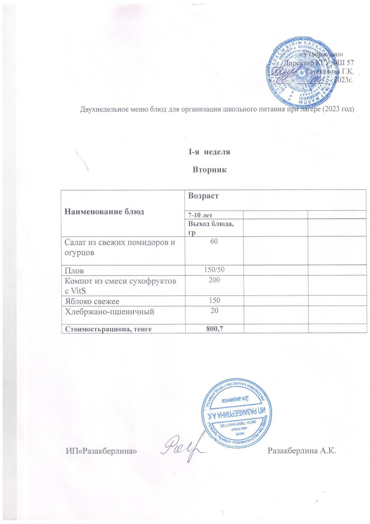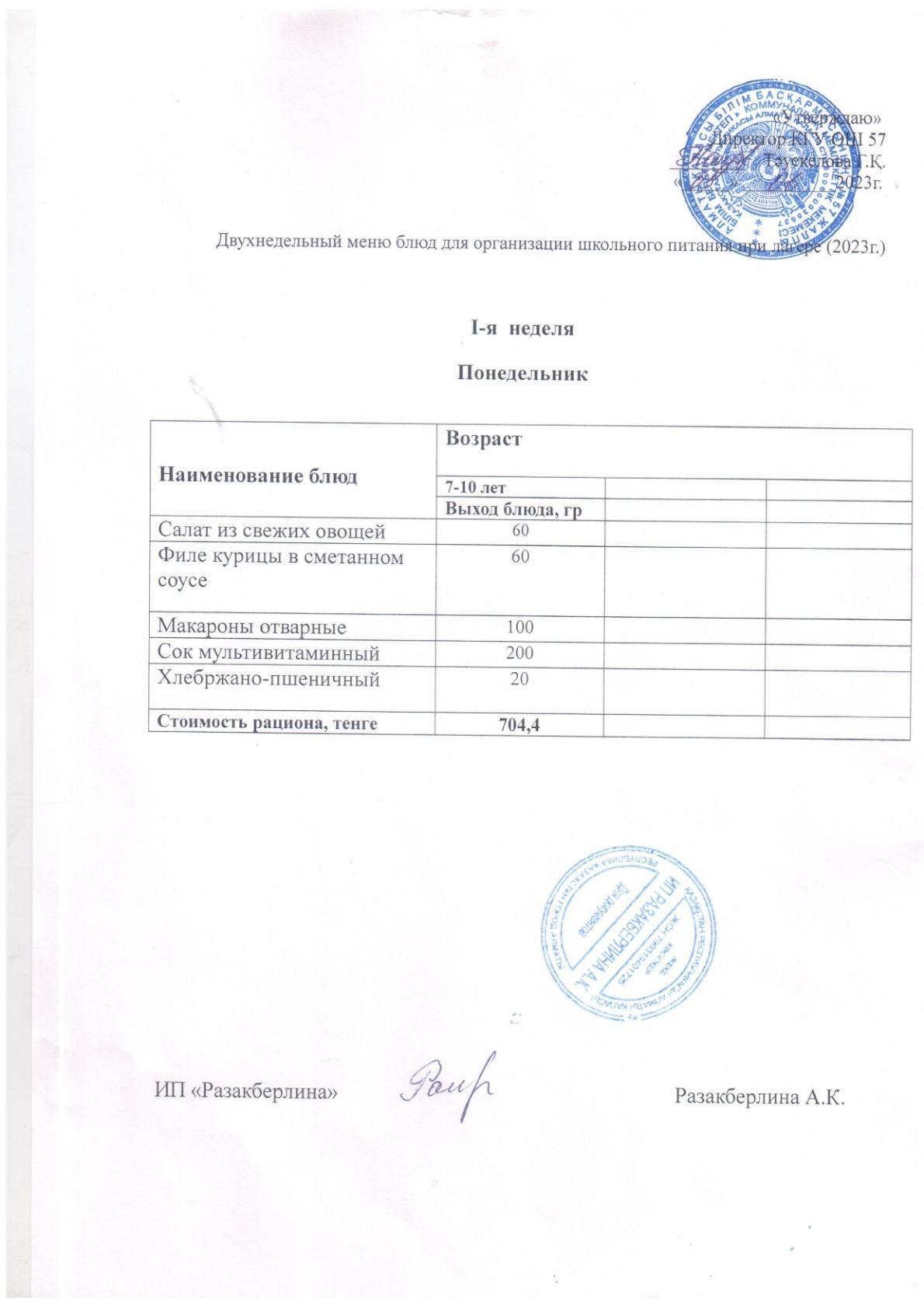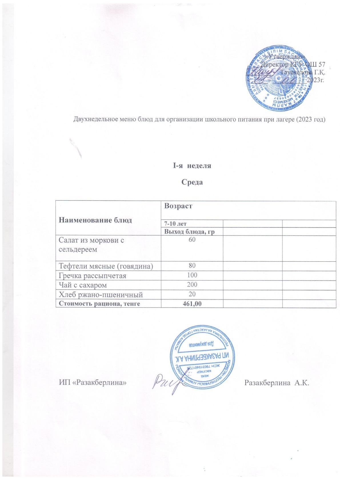 05 маусым 2023 0 1 2 3 4 5 1 аптаға арналған мектеп асханасының мәзірі. Меню школьной столовой на неделю 1 неделя.