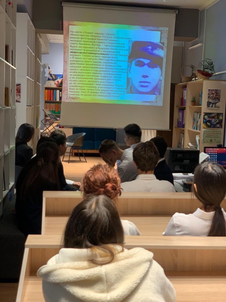 Кітапханашы М. А. Зосимова мен тарих пәнінің мұғалімі Е. С. Кокидько әдеби-ағартушылық іс-шара ұйымдастырды.Библиотекарь Зосимова М.А. и учитель истории Кокидько Е. С. организовали литературно-просветительское мероприятие