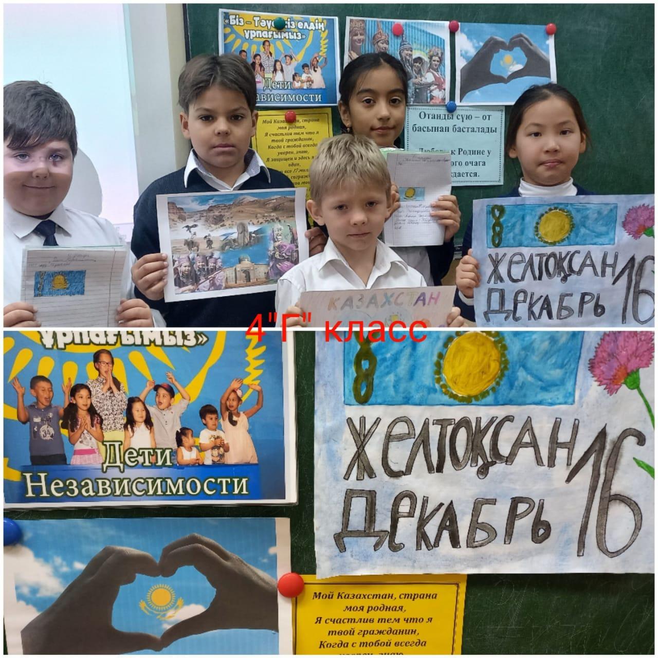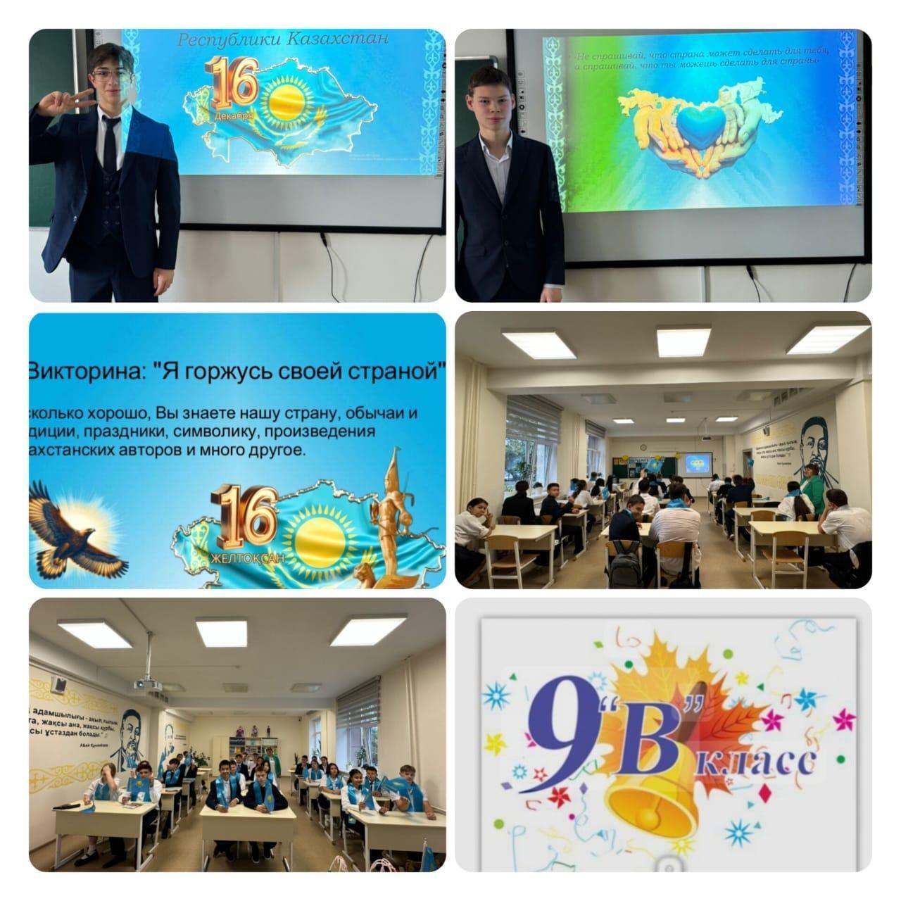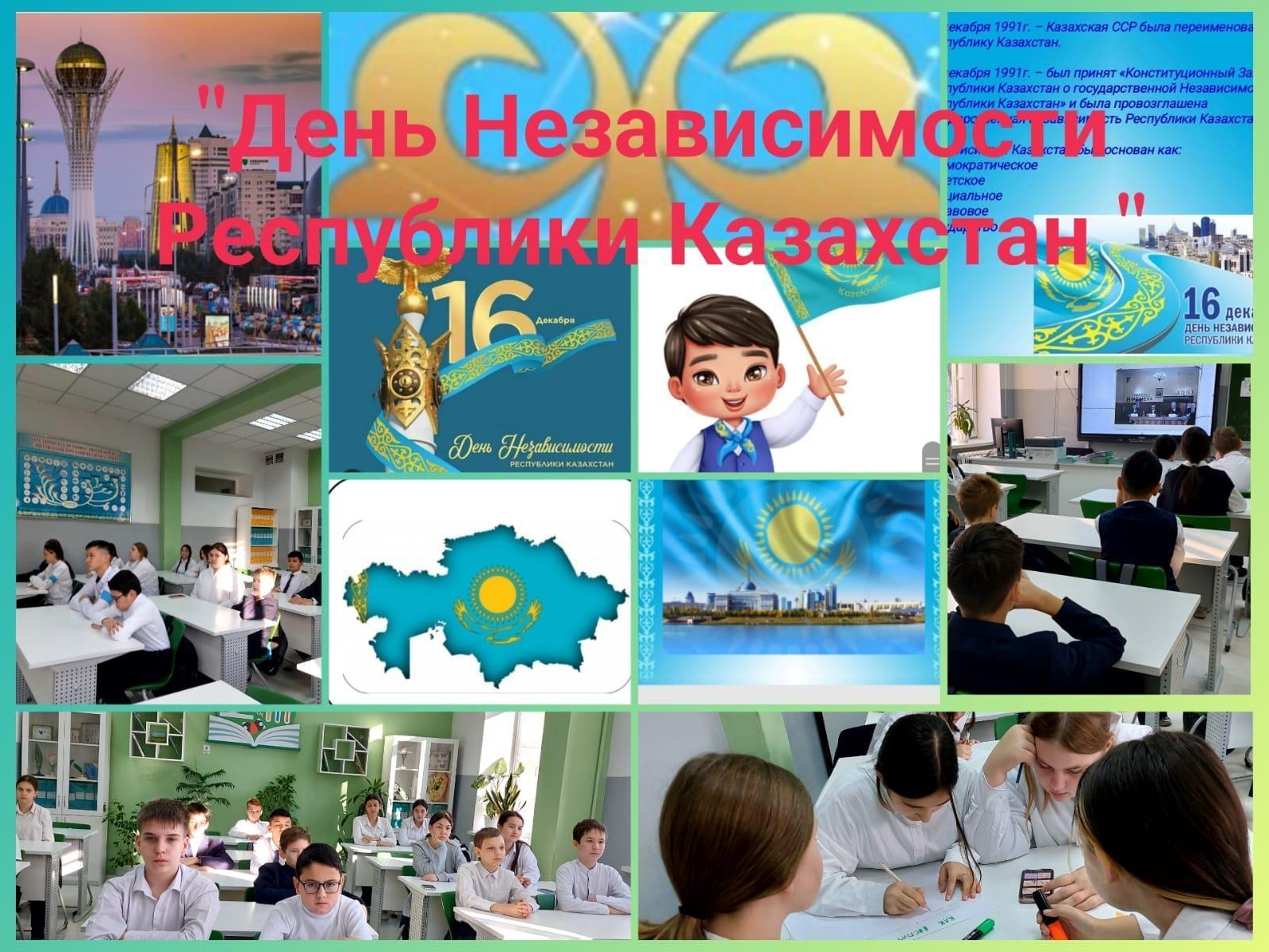 9.12.2024г. в 1-11 классах были проведены классные часы, посвященные Дню Независимости РК. В ходе классных часов были озвучены основные этапы в жизни нашего государства – от обретения независимости и до настоящего момента. Использован богатый видео материал, вызвавший большой интерес у учащихся.