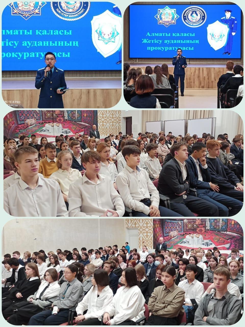 Сегодня, 03.12.2024г. прокурор отдела прокуратуры Жетысуского района Керімбек Арман Мұратбекұлы провел лекцию о вреде употребления наркотических средств и психотропных веществ. Прокурор рассказал ребятам о вреде наркомании, разъяснил административную и уголовную ответственность за правонарушения и преступления, связанные с приобретением, хранением и сбытом наркотических средств, привел примеры их пагубного воздействия. Продемонстрирован документальный фильм "Закладка". На лекции присутствовали ученики 9-х, 10-х, 11-х классов #57школыЖетысускогорайонагородаАлматы. По окончании мероприятия прокурор ответил на вопросы школьников.