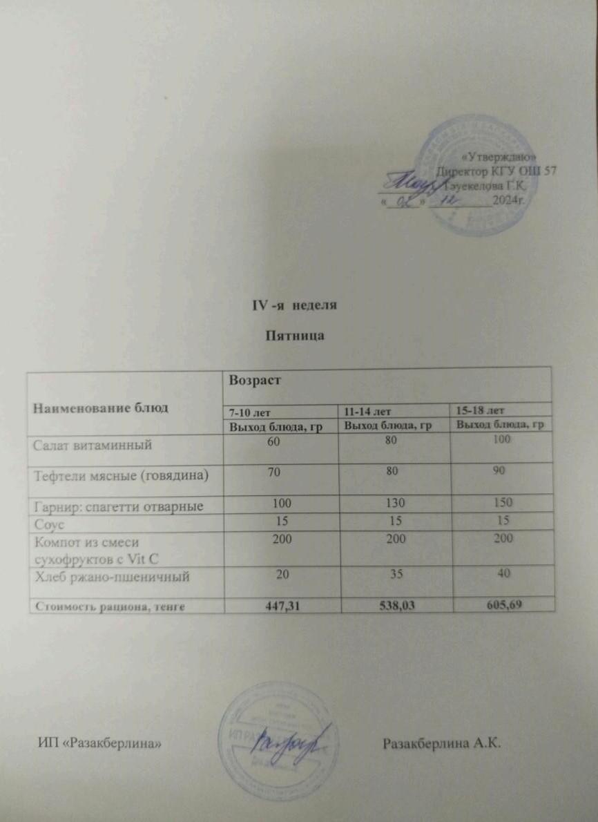 » 4 апта мәзірі, жұма Меню 4 неделя пятница