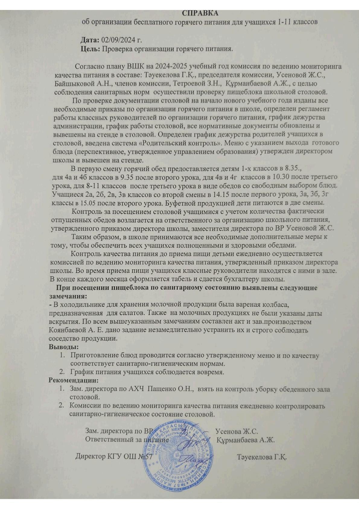 1-11 сынып оқушыларына тегін ыстық тамақ беруді ұйымдастыру туралы анықтама Справка об организации бесплатного горячего питания учащихся 1-11 классов