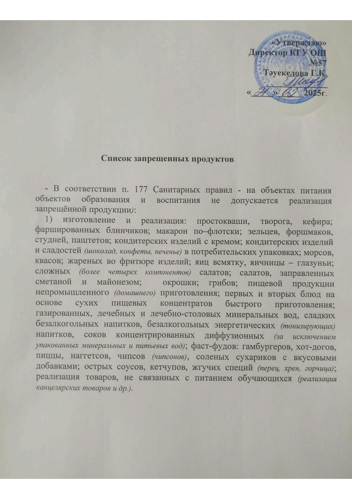 Бір аптаға арналған мәзір Список запрещенных продуктов
