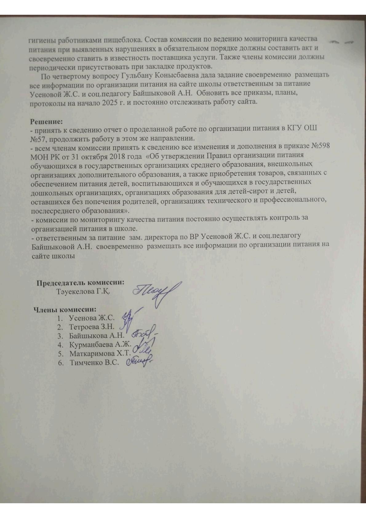 тамақтану сапасына мониторинг жүргізу жөніндегі комиссия құру туралы. Приказ о создании школьной комиссии по мониторингу качества питания