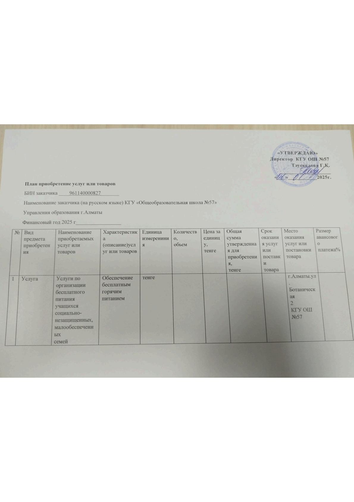ҚЫЗМЕТТЕРДІ САТЫП АЛУДЫҢ 2025 ЖЫЛҒА АРНАЛҒАН ЖОСПАРЫН БЕКІТУ ТУРАЛЫ БҰЙРЫҚ ПРИКАЗ ОБ УТВЕРЖДЕНИИ ПЛАНА ПРИОБРЕТЕНИЯ УСЛУГ НА 2025 ГОД
