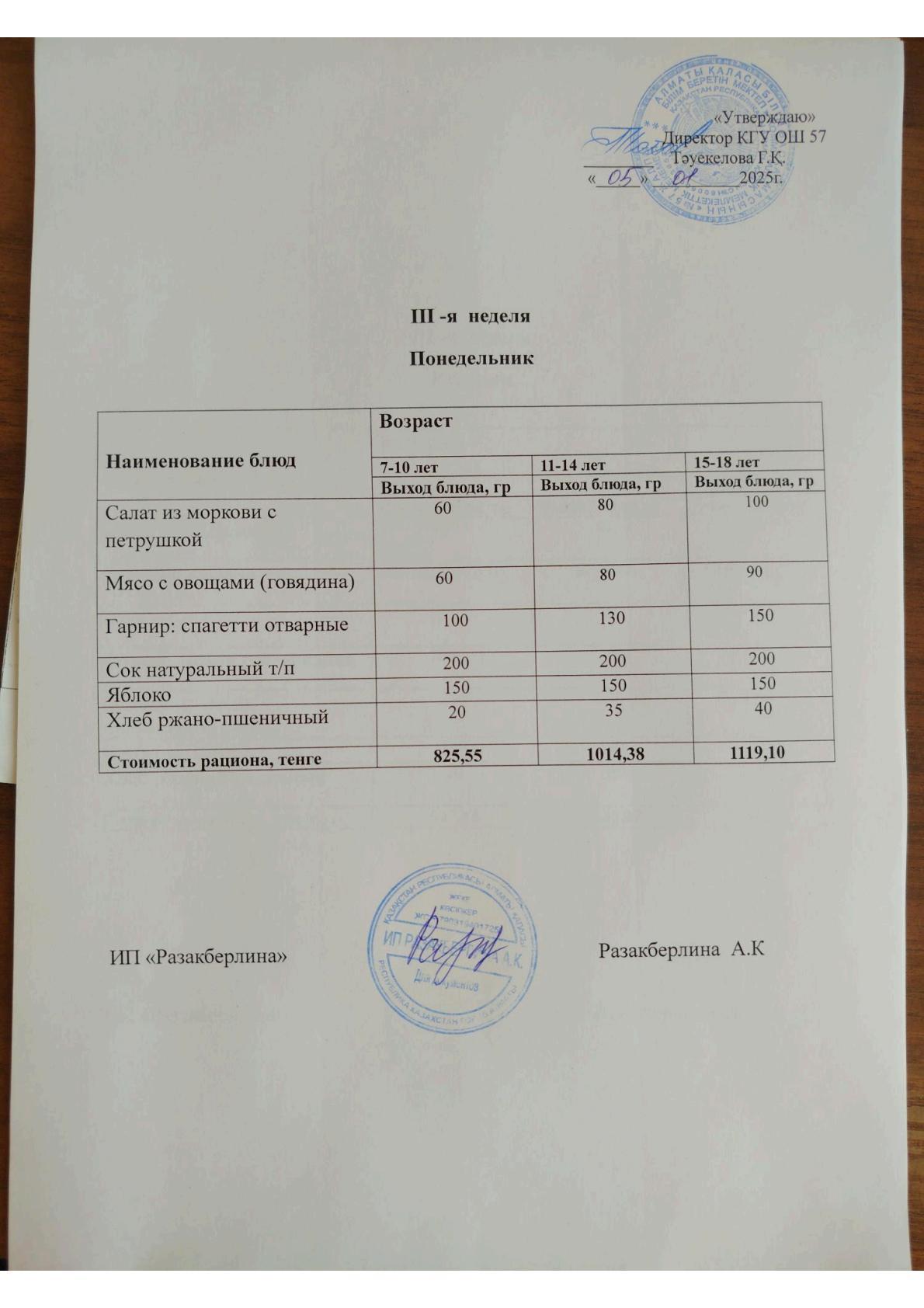 » 3 апта мәзірі, дүйсенбі Меню 3 неделя, понедельник