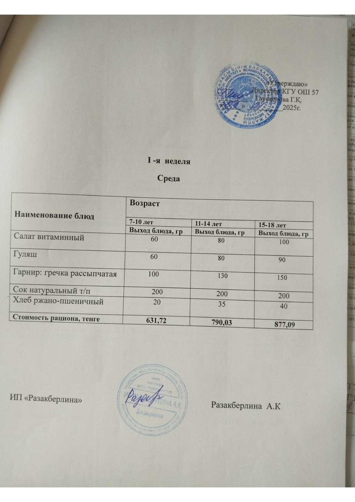 3 апта мәзірі, сәрсенбі Меню 3 неделя, среда