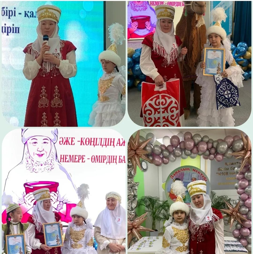 28.01.2025ж. Алматы қаласы, Жетісу ауданында 108 мектеп- гимназиясында "Біртұтас тәрбие" бағдарламасы аясында "Әже -көңілдің ажары, Немере - өмірдің базары" тақырыбында аудандық әжелер байқауы өткізілді. Бұл байқауға 57 ЖББ мектебінен 5 "а" сынып оқушысы Адыльбек Амина, әжесі Сейтхожаева Махаббат Шайлаубайқызымен бірге барып атсалысып, өнер көрсетіп "Балқаймақ Әже" номинациясын иеленді.