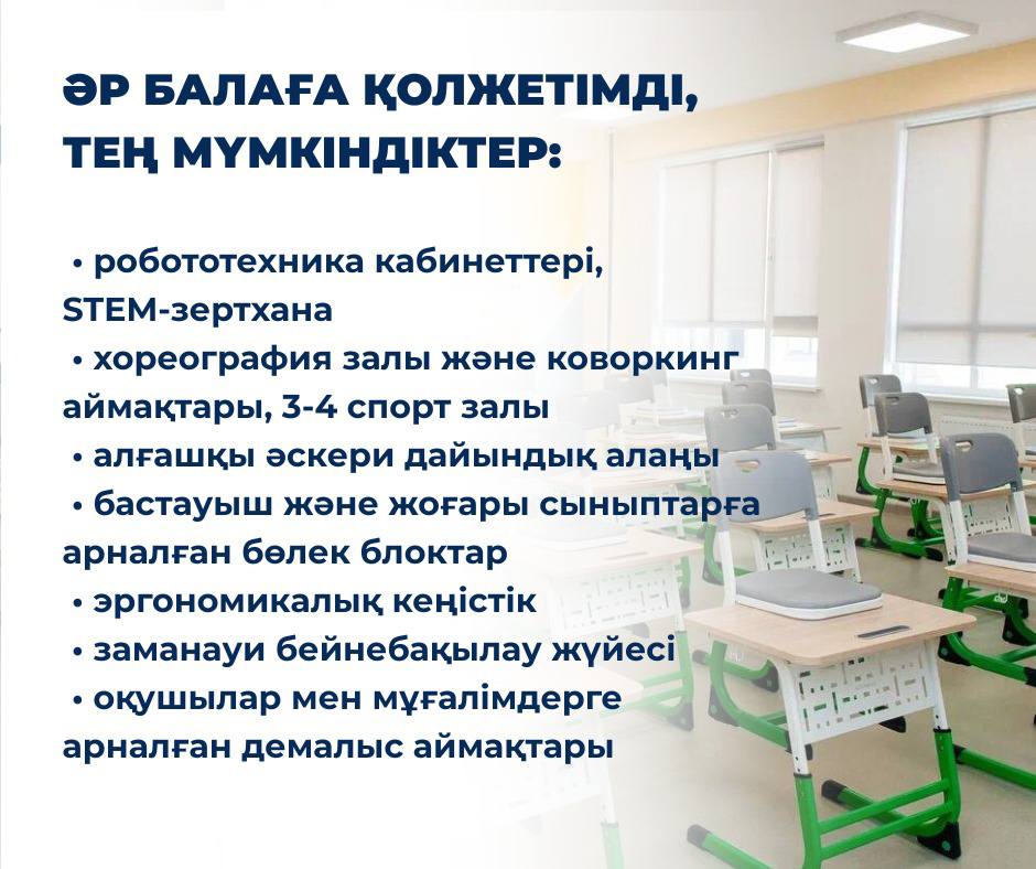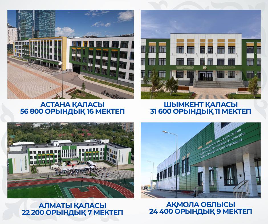 24 маусым 2025 0 1 2 3 4 5 Келешек мектептері 🏫 Елімізде Мемлекет басшысының бастамасымен «Келешек мектептері» ұлттық жобасы қарқынды жүзеге асырылуда. 2024–2025 оқу жылында 254 мың орындық 105 жаңа форматтағы мектеп пайдалануға берілді, ал 2025 жылдың соңына дейін олардың саны 217-ге жетеді