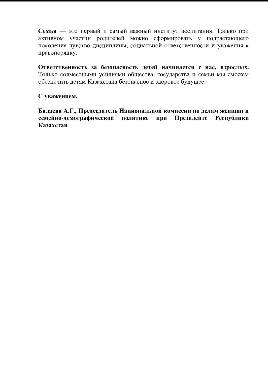 Ата-аналарға арналған үндеу Обращение к родителям