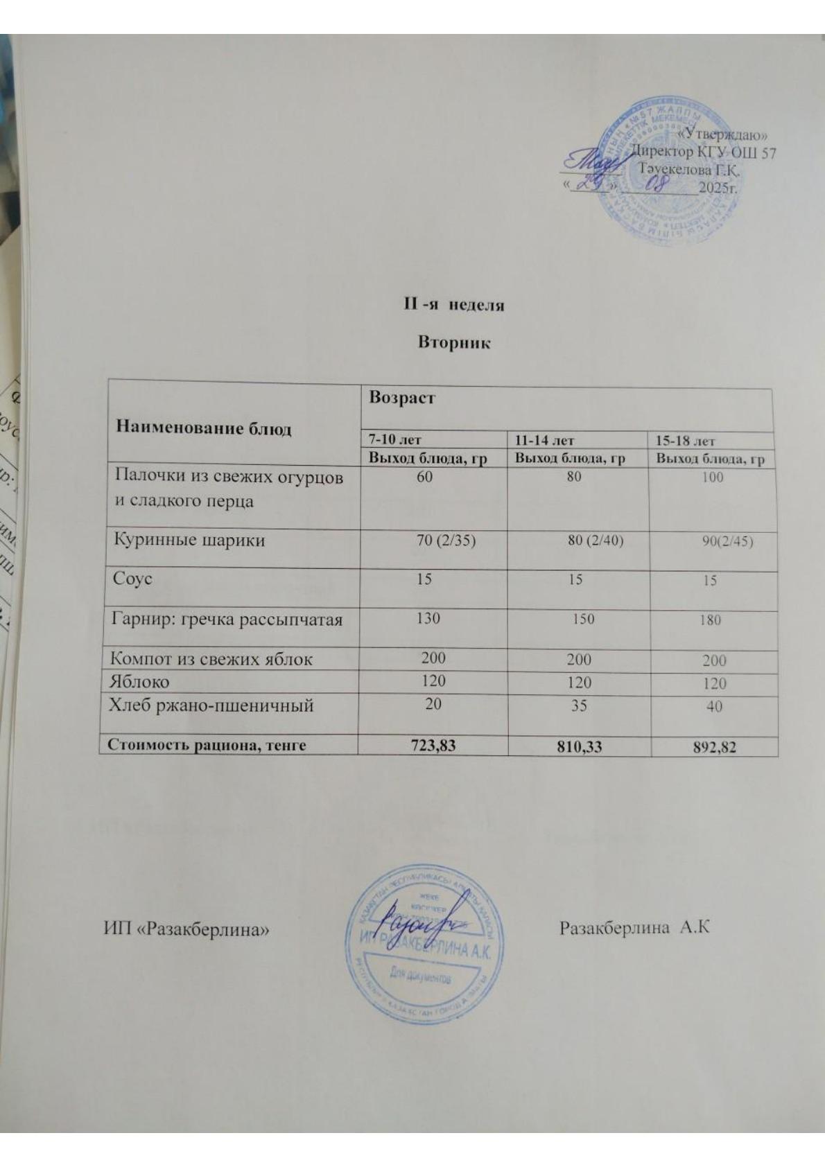 2-апта ас мәзірі, сейсенбі Меню, 2 неделя, вторник