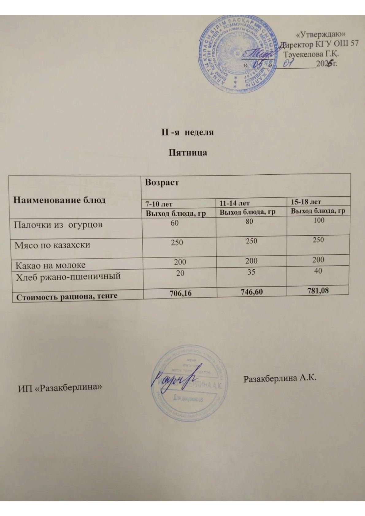 2-апта ас мәзірі, жұма Меню 2 неделя, пятница