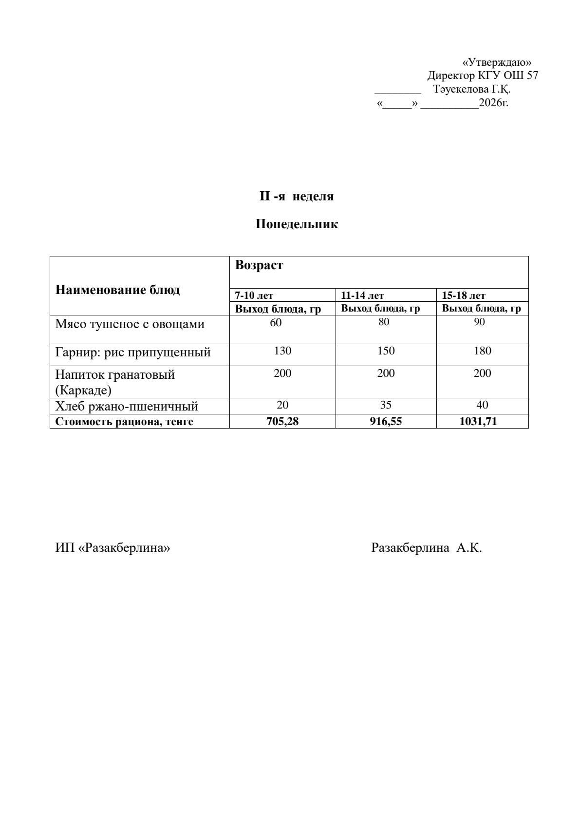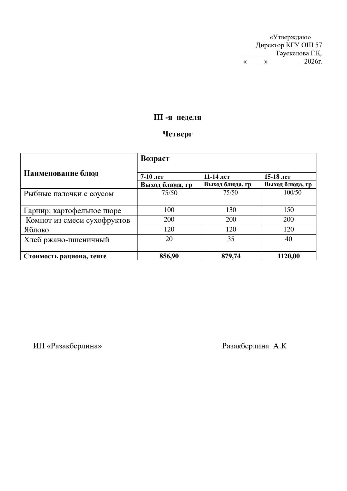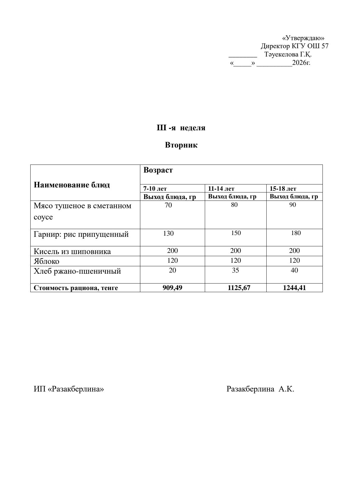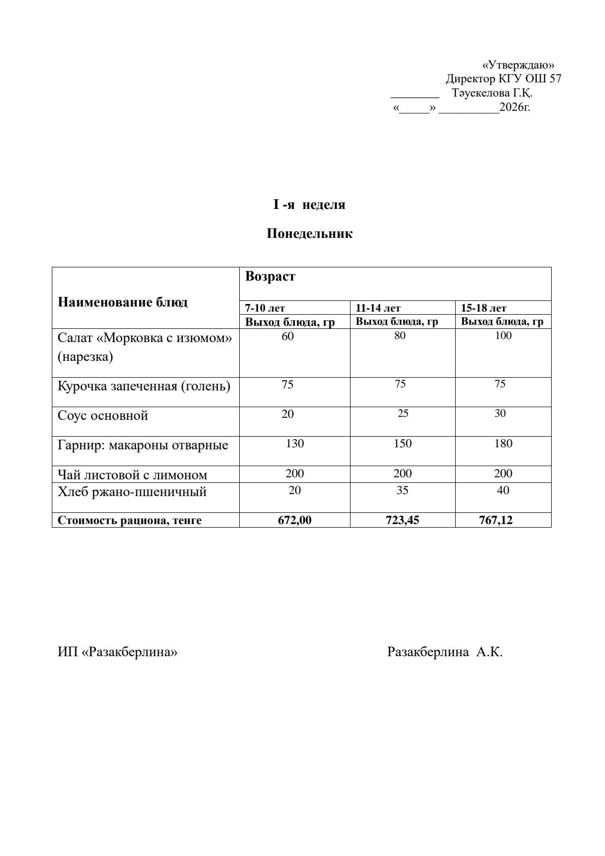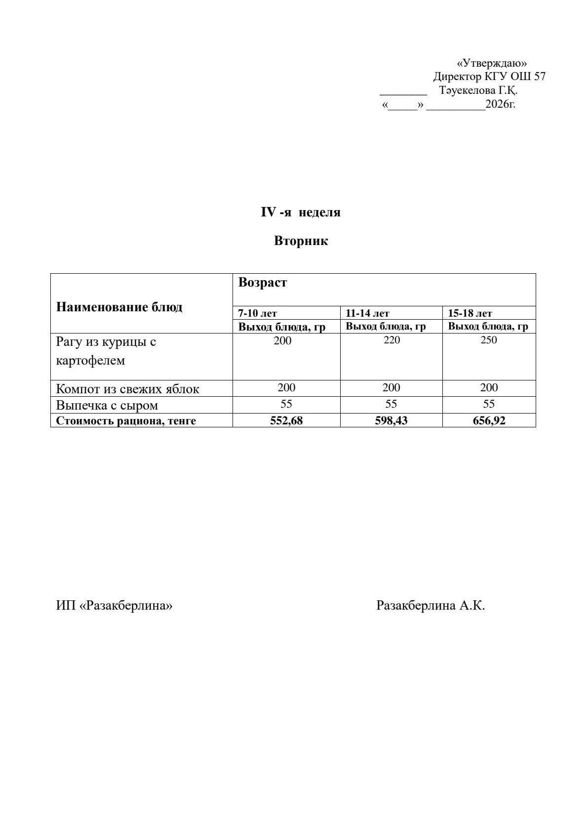 Жалпыға бірдей білім беру қоры қаражаты есебінен оқушылардың ыстық тамағын ұйымдастыруға арналған таңғы ас пен түскі ас мәзірі.Перспективное меню завтраков и полдников для организации горячего питания учащихся за счет средств из фонда Всеобуча
