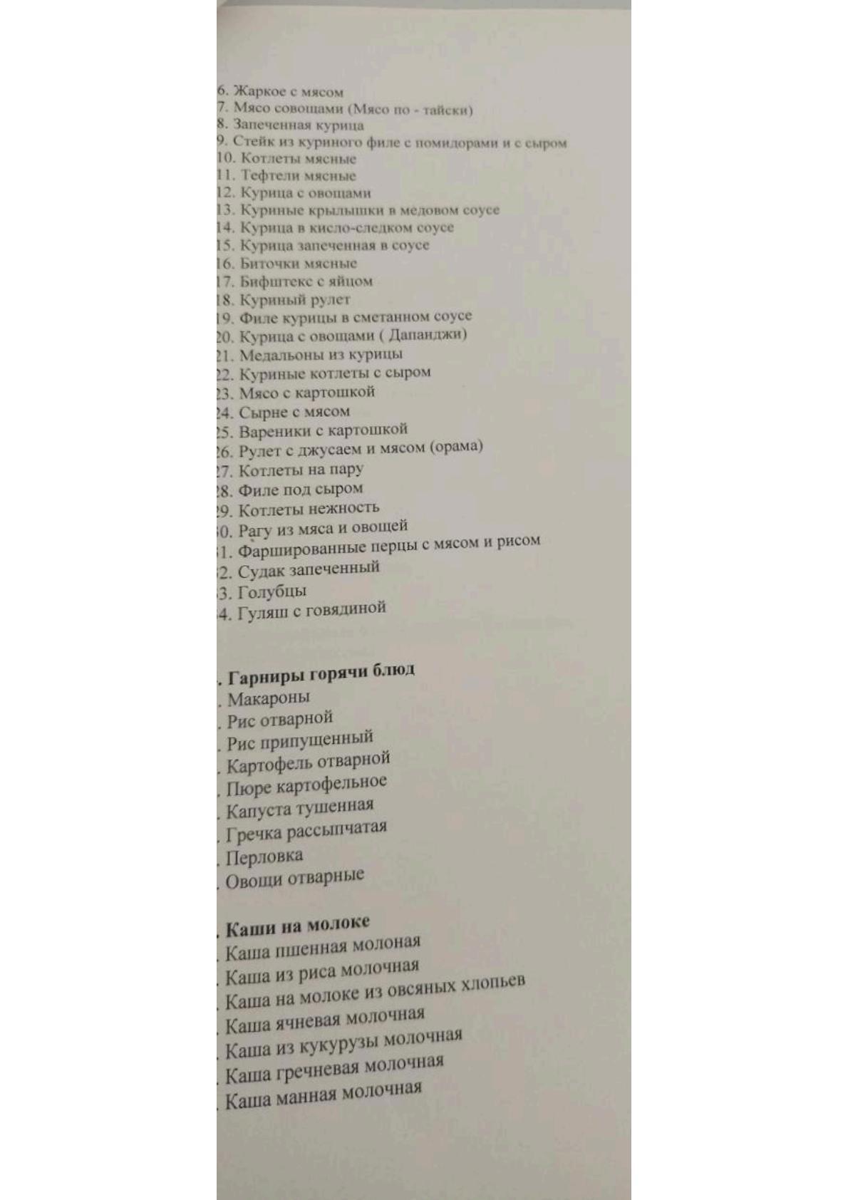 Плановый ассортиментный перечень блюд реализуемый в пищеблоке