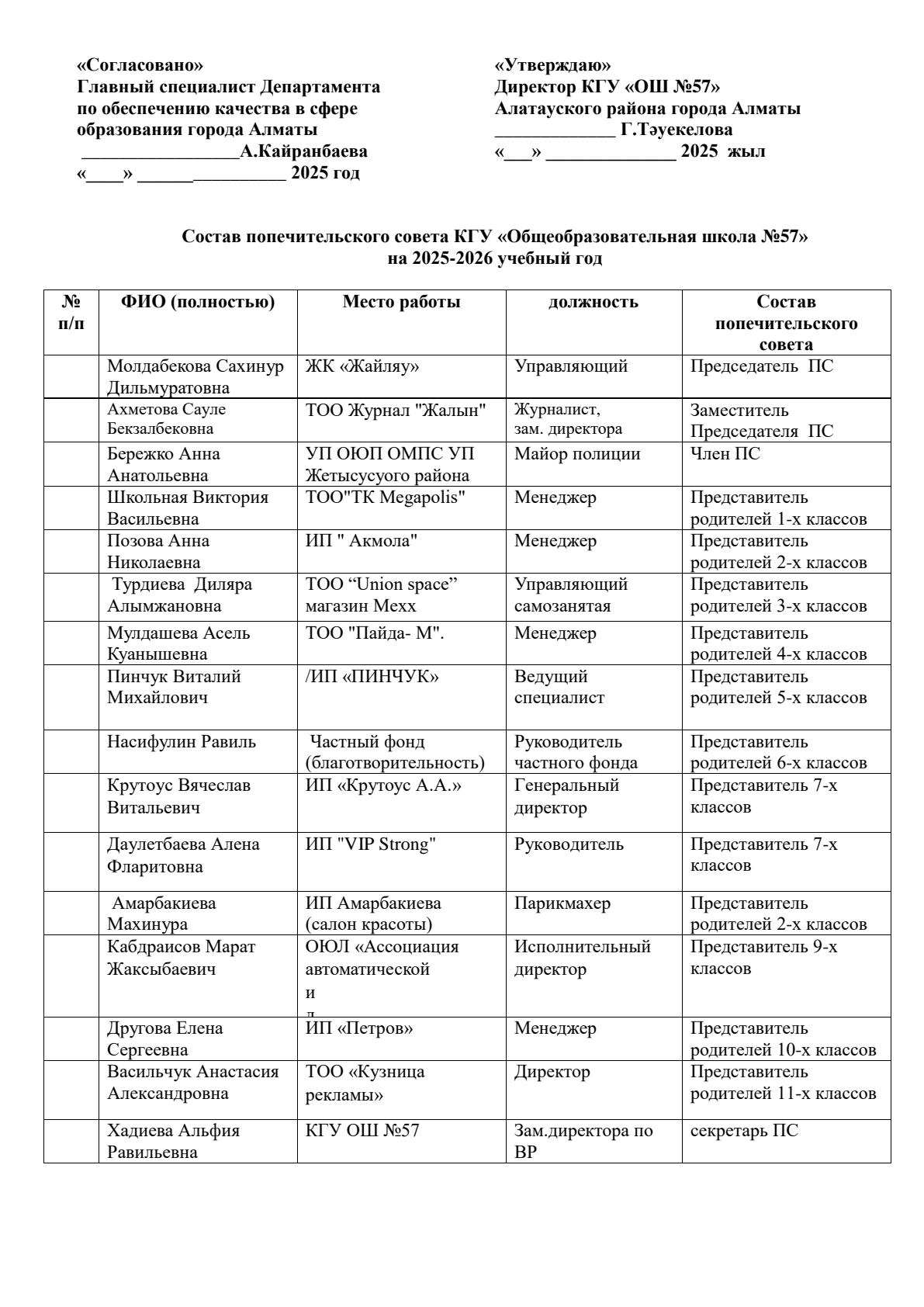 Қамқоршылық кеңестің құрамы Состав попечительского совета