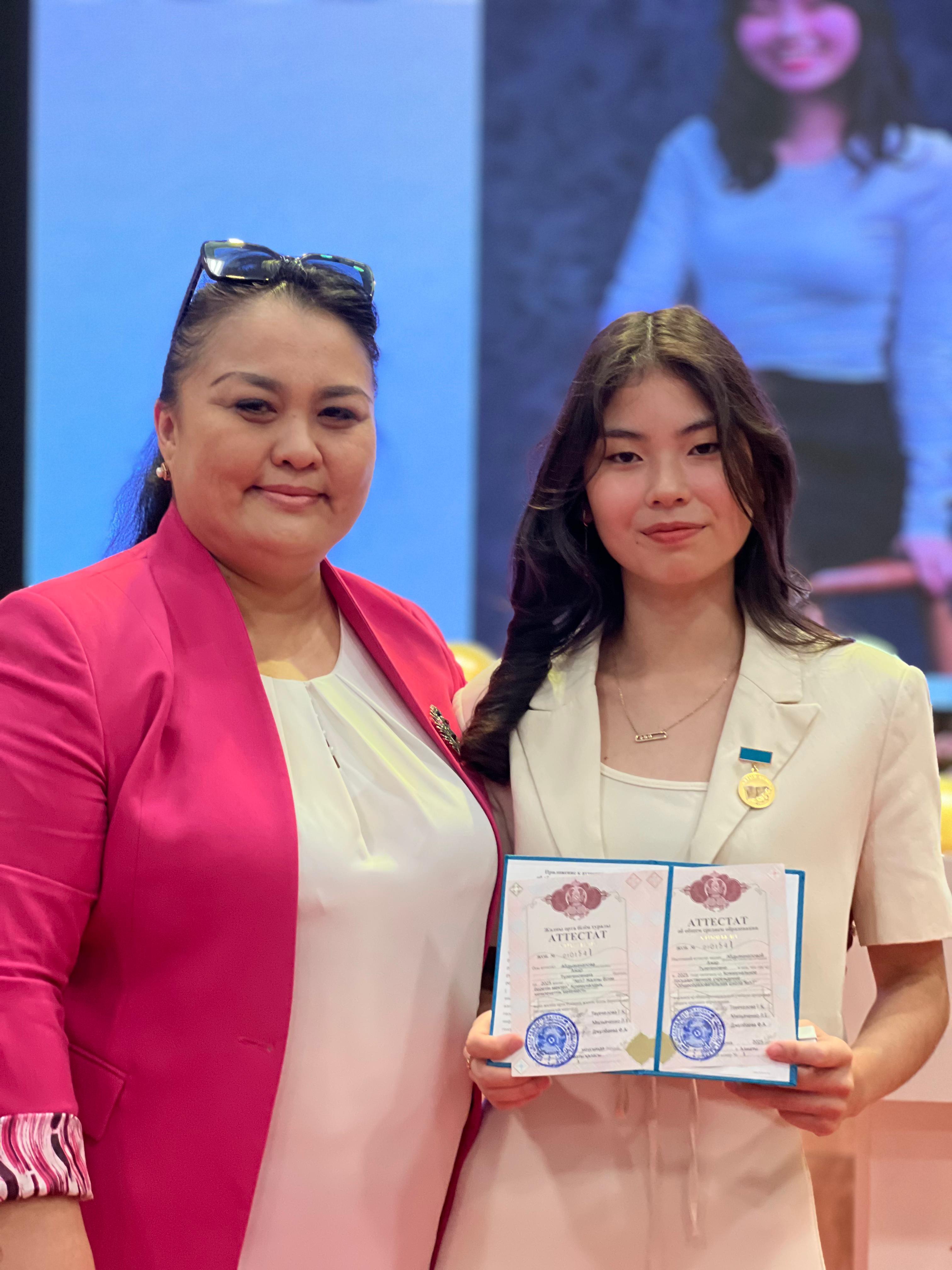 🏅 Золотой знак «Алтын белгі» заслуженно получила Абдыманапова Ажар — пример настойчивости, упорного труда и любви к знаниям.